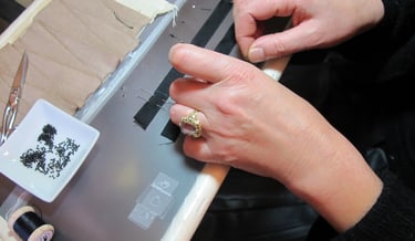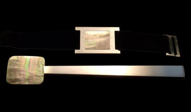 Silver 925, black stingray, enbroided silk ribbon.