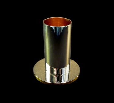 Shot e sottobicchiere H. Metallo argentato e dorato.